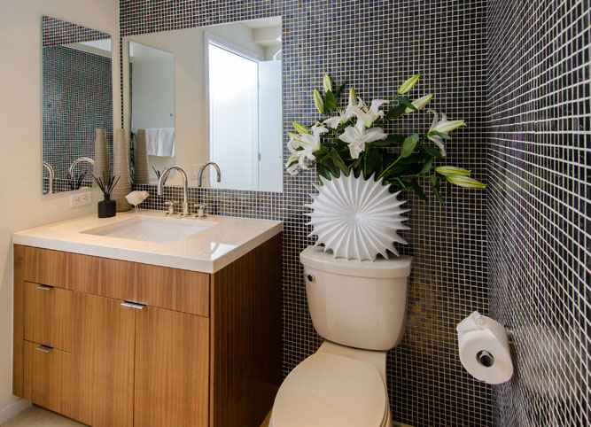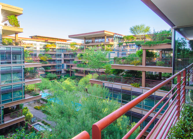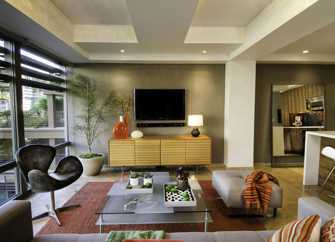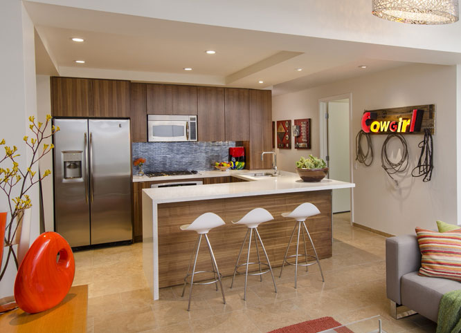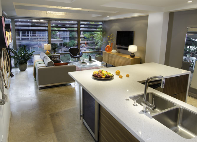 This project was a part of a series of projects acquired by an investment fund established and managed by Nathan Cork Design that pursued distressed properties in the greater Phoenix area. This 1 bedroom + study, 1.5 bath condo was lightly renovated and staged to reflect the modern aesthetic already established at the infamous glass and steel structured Optima Camelview condo complex designed by famed architect David Hovey.